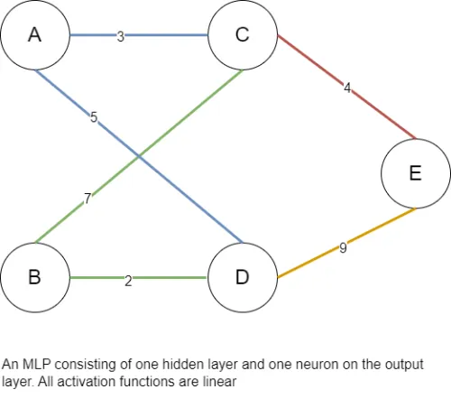 | Between the input layer and the first hidden layer (2 * 2) || AC+AD+BC+BD | 4 |