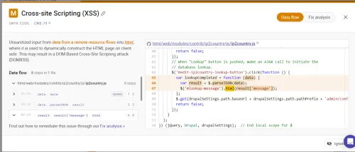 The screenshot above illustrates the sort of vulnerability breakdown delivered by this tool after scanning the repository. Consequently, if part of your process includes the preparation and delivery of a security package to stakeholders, the cloud service provides a means of analyzing the code and presents a detailed explanation of the vulnerability encountered and the recommended fix.